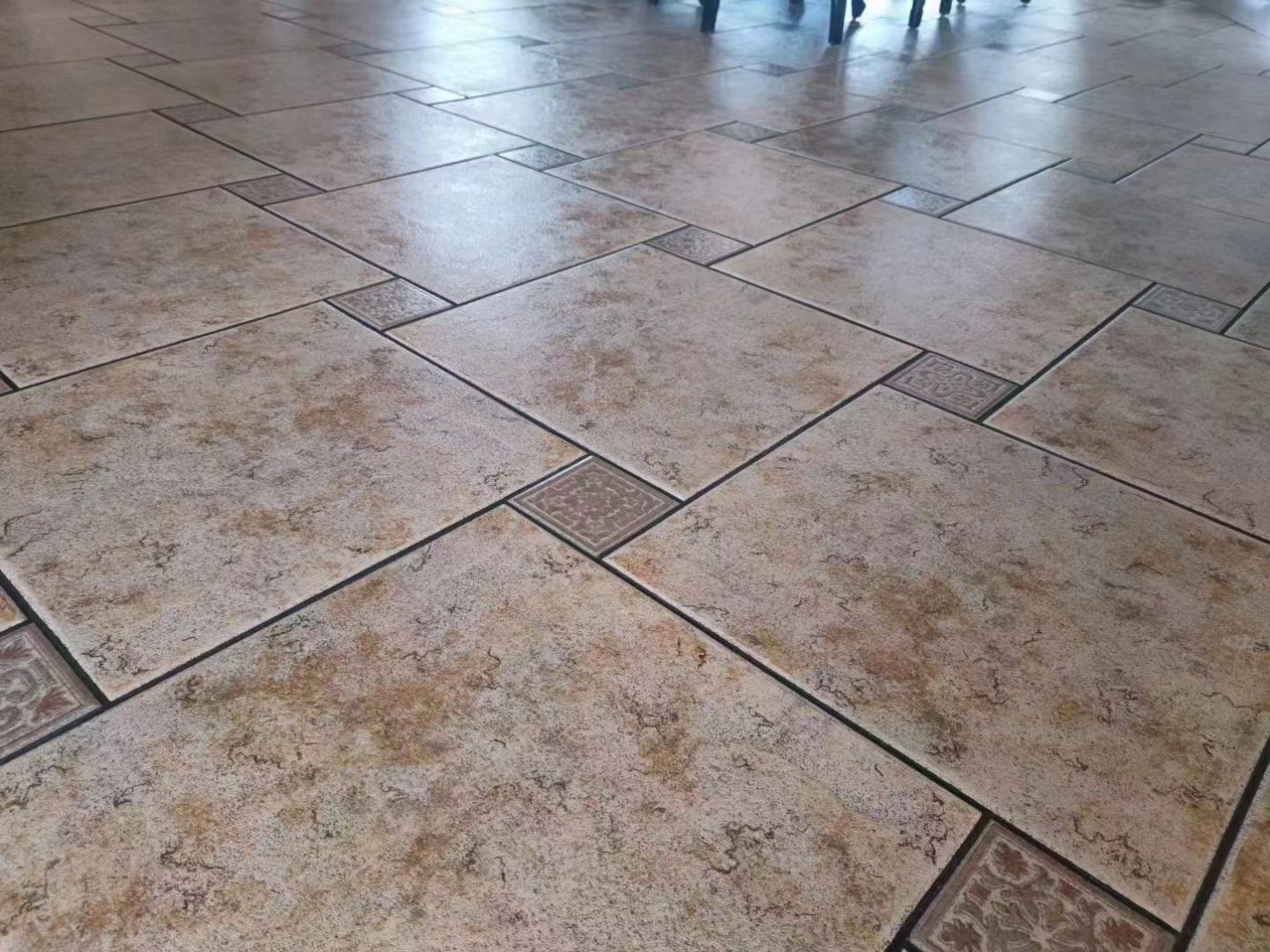 本案的美缝施工相对比较简单,瓷砖为80*80的浅色地砖,也在业主的要求下,对踢脚线位置进行了